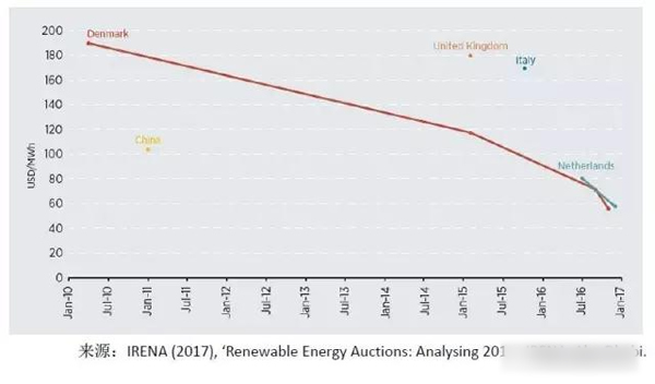 歐洲補(bǔ)貼機(jī)制隨著市場(chǎng)的發(fā)展從政府定價(jià)走向了競(jìng)拍模式,進(jìn)一步帶動(dòng)價(jià)格下降。隨著國(guó)內(nèi)電改的推行,從FIT走向FIP或成趨勢(shì),之后待到時(shí)機(jī)成熟,是否可以重啟特許經(jīng)營(yíng)權(quán)競(jìng)標(biāo)?