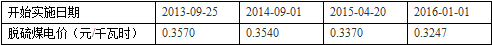 脫硫煤電價:近年來青海省的脫硫煤電價如下: