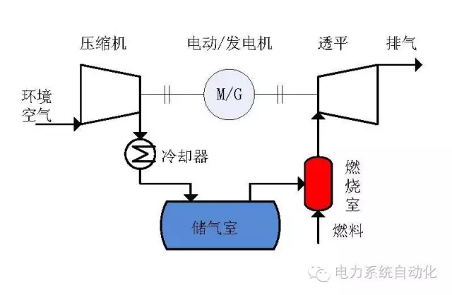 壓縮空氣儲(chǔ)能系統(tǒng)可利用低谷電、棄風(fēng)電、棄光電等對(duì)空氣進(jìn)行壓縮,并將高壓空氣密封在地下鹽穴、地下礦洞、過(guò)期油氣井或新建儲(chǔ)氣室中,在電網(wǎng)負(fù)荷高峰期釋放壓縮空氣推動(dòng)透平機(jī)(氣輪機(jī)、渦輪機(jī)等)發(fā)電。按照運(yùn)行原理,壓縮空氣儲(chǔ)能系統(tǒng)可以分為補(bǔ)燃式和非補(bǔ)燃式兩類(lèi)。