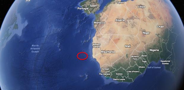位于非洲西北海岸附近的海底山脈:熱帶海底山被發(fā)現(xiàn)含有高純度的碲礦。(圖片來源:Google Earth)