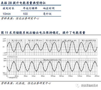 由于存在電力系統(tǒng)操作負(fù)荷性質(zhì)多變,設(shè)備負(fù)載非線性等問題,使得用戶獲得的電能存在電壓、電流變化或者頻率偏差等問題,此時(shí)電能的質(zhì)量較差。系統(tǒng)調(diào)頻、無功支持就是在發(fā)電側(cè)和輸配電側(cè)提升電能質(zhì)量的形式。在用戶側(cè),儲(chǔ)能系統(tǒng)同樣可以進(jìn)行平滑電壓、頻率波動(dòng),例如利用儲(chǔ)能解決分布式光伏系統(tǒng)內(nèi)電壓升高、驟降、閃變等問題。提升電能質(zhì)量屬于典型的功率型應(yīng)用,具體放電市場及運(yùn)行頻率依據(jù)實(shí)際應(yīng)用場景而有所不同,但一般要求響應(yīng)時(shí)間在毫秒級(jí)。