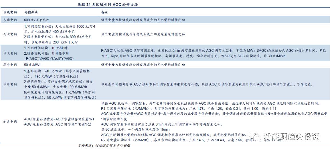 儲(chǔ)能技術(shù)的經(jīng)濟(jì)性評(píng)價(jià)方法有多種,由于儲(chǔ)能帶來的社會(huì)效益無法被企業(yè)所量化獲得,因此我們只按現(xiàn)有機(jī)制計(jì)算儲(chǔ)能的投資回報(bào)。實(shí)際上,由于不同的應(yīng)用場景、不同的區(qū)域以及不同的儲(chǔ)能技術(shù)需要考慮的變量因素不同,在現(xiàn)行電力體制下,可能存在區(qū)域性的盈利機(jī)會(huì)。以輔助服務(wù)為例,由于有不同的標(biāo)準(zhǔn)和政策,實(shí)際計(jì)算中需要做相應(yīng)調(diào)整。如各區(qū)域的《發(fā)電廠并網(wǎng)運(yùn)行管理細(xì)則》和《并網(wǎng)發(fā)電廠輔助服務(wù)管理細(xì)則》中規(guī)定了電力輔助服務(wù)交易的承付、輔助服務(wù)種類、考核補(bǔ)償方式等。各區(qū)域調(diào)頻補(bǔ)償辦法不同,其中華北電網(wǎng)的補(bǔ)償在考慮了容量補(bǔ)償和可用時(shí)間補(bǔ)償以外還考慮了調(diào)節(jié)性能,一定程度上使得性能更優(yōu)的儲(chǔ)能電站可以獲得更多的補(bǔ)償。