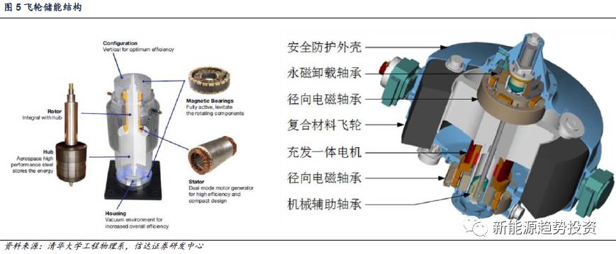 但是飛輪儲(chǔ)能的主要缺點(diǎn)在于其空載下的能量損失大,每小時(shí)超過2.5%。盡管飛輪儲(chǔ)能理論能量密度高達(dá)200-400Wh/kg,但是在實(shí)際應(yīng)用過程中,限于材料的因素,安全穩(wěn)定運(yùn)行的飛輪的儲(chǔ)能密度通常不高于100Wh/kg,此外,價(jià)格昂貴也是影響飛輪儲(chǔ)能推廣的因素之一。從技術(shù)研發(fā)的角度看,一方面將飛輪國產(chǎn)化以降低成本是大勢所趨,另一方面尋求新型飛輪材料以提升能量密度或者降低成本是飛輪儲(chǔ)能應(yīng)用推廣的關(guān)鍵??傮w上來說,由于飛輪儲(chǔ)能屬于功率型儲(chǔ)能,其應(yīng)用場景在于調(diào)頻,平滑新能源輸出波動(dòng)上,同時(shí)由于其放電時(shí)間較短(屬于分秒級(jí)應(yīng)用),目前主要應(yīng)用在UPS中。