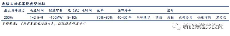 抽水蓄能的特點(diǎn)主要表現(xiàn)為儲(chǔ)能容量大(百兆瓦起步),響應(yīng)時(shí)間相對(duì)燃?xì)鈾C(jī)組及火電機(jī)組要短,充放電時(shí)間長,循環(huán)壽命是所有儲(chǔ)能技術(shù)中最長的,因此可以用于能量時(shí)移、調(diào)頻、調(diào)相、黑啟動(dòng)等。