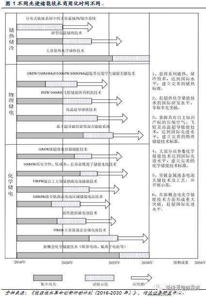 從技術(shù)的角度看,《能源技術(shù)革命創(chuàng)新行動(dòng)計(jì)劃(2016-2030年)》對(duì)不同的儲(chǔ)能技術(shù)在近、中、遠(yuǎn)期分別制定了不同的目標(biāo),可以看做是對(duì)儲(chǔ)能技術(shù)的戰(zhàn)略指導(dǎo)方向,但是文件針對(duì)的是先進(jìn)儲(chǔ)能技術(shù),從規(guī)劃的時(shí)間看,即使是發(fā)展進(jìn)度最快的分布式能源系統(tǒng)中的大容量儲(chǔ)熱/儲(chǔ)冷系統(tǒng)也要在2020年商業(yè)化推廣,而在此期間,對(duì)現(xiàn)有的儲(chǔ)能技術(shù)如何進(jìn)行支持則并沒有提及。