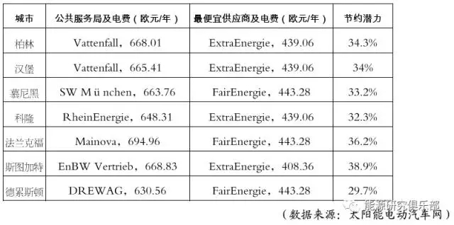 德國(guó)部分大城市最便宜電力商