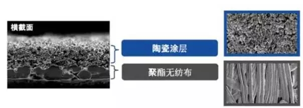 三菱制紙以無紡布為原料,開發(fā)新的隔膜,將陶瓷粒子涂敷在聚酯纖維構(gòu)成的無紡布隔膜上,以增強(qiáng)電池隔膜的耐高溫性能,其可耐三倍高溫(達(dá)到470℃)。