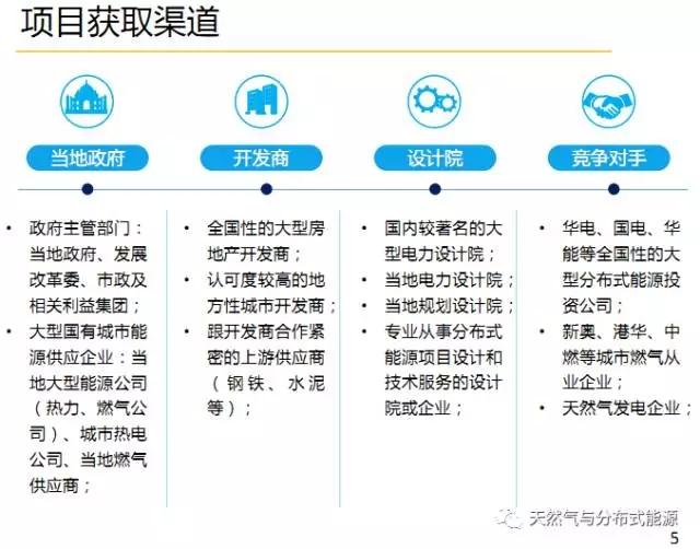 在天然氣分布式能源市場開發(fā)策略中,關(guān)注區(qū)域內(nèi)相關(guān)行業(yè)的信息,結(jié)合一定的開發(fā)原則,注重信息獲取的渠道,鎖定目標(biāo)客戶群體,詳細(xì)分析項(xiàng)目特點(diǎn),分類進(jìn)行對接開發(fā)。