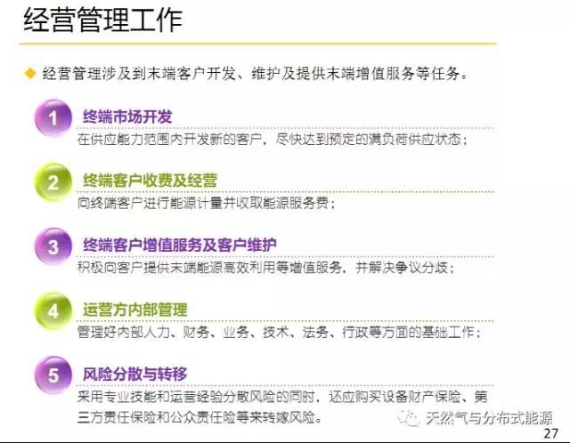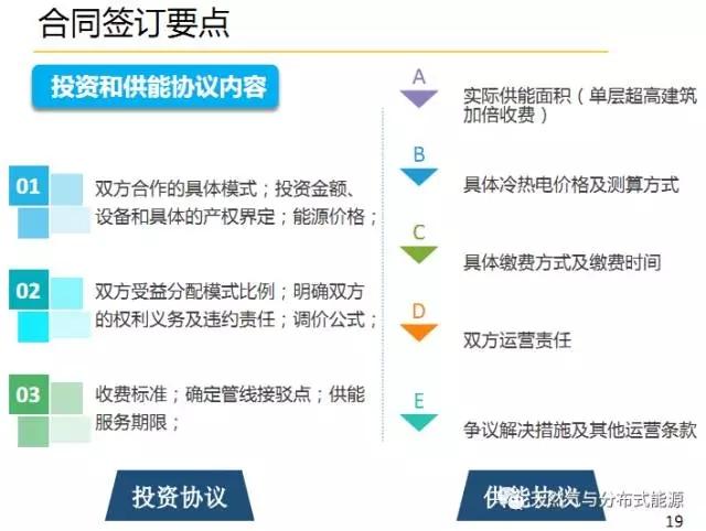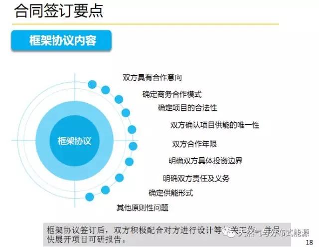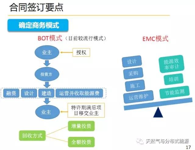 在天然氣分布式能源市場開發(fā)合同要點(diǎn)中,確定商務(wù)模式很關(guān)鍵。 擬定一定的框架協(xié)議,明確投資及功能協(xié)議的內(nèi)容,明確收費(fèi)的模式及價(jià)格調(diào)整方法等等。