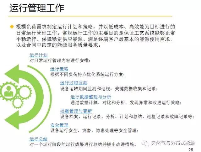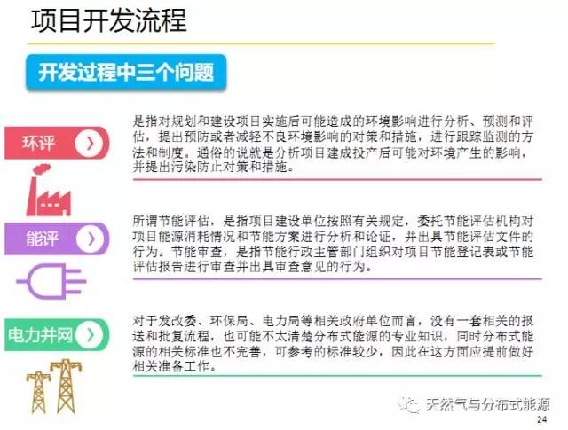 在天然氣分布式能源開發(fā)及運(yùn)作中,分清樓宇式及區(qū)域式項(xiàng)目開發(fā)流程。重點(diǎn)關(guān)注環(huán)評、能評及電力并網(wǎng)的手續(xù)!項(xiàng)目后期運(yùn)作,注重經(jīng)營管理及日常維護(hù)工作。
