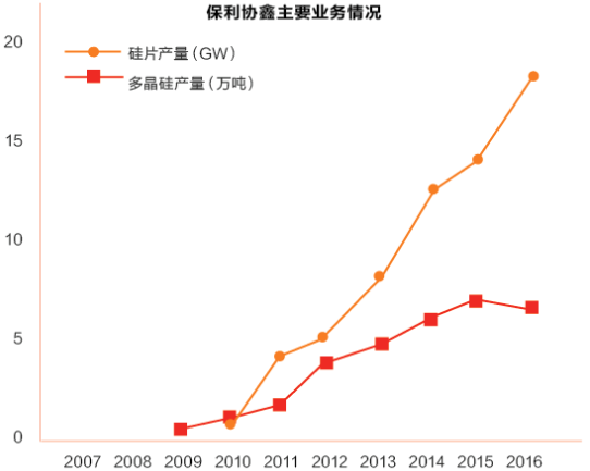 2016年,協(xié)鑫的第一家上市公司保利協(xié)鑫業(yè)績(jī)依舊搶眼,全年生產(chǎn)6.9萬噸多晶硅及17.3吉瓦硅片,較2015年同期分別減少6.7%和增加15.8%,繼續(xù)位列全球第一。