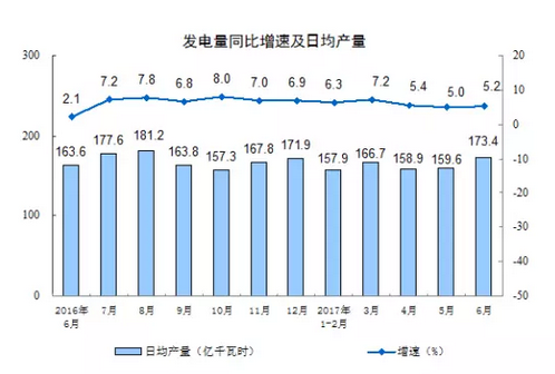 中國儲能網(wǎng)訊:今日,國家統(tǒng)計局發(fā)布2017年1-6月份規(guī)模以上工業(yè)發(fā)電量29598億千瓦時,同比增長6.3%。其中新能源方面,太陽能發(fā)電量289億千瓦時,同比增長最快,達(dá)35.1%;風(fēng)力發(fā)電量1327億千瓦時,同比增長17.9%。