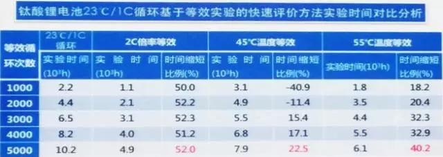 圖中可以看出,鈦酸鋰的循環(huán)次數(shù)和容量保持率是大大好于磷酸鐵鋰電池。據(jù)我們的測試經(jīng)驗來看,循環(huán)次數(shù)七八千次以前,國內(nèi)的電池和國際上的電池區(qū)別不大,七八千次以后,國產(chǎn)電池的一致性上有差異。這些問題促使我們需要改進評測技術(shù)。
