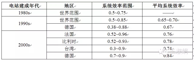 隨著光伏電站整體設(shè)計(jì)、施工、運(yùn)維技術(shù)水平的提高,光伏電站的效率也在不斷提高。下表是國外機(jī)構(gòu)的一個(gè)統(tǒng)計(jì)結(jié)果。