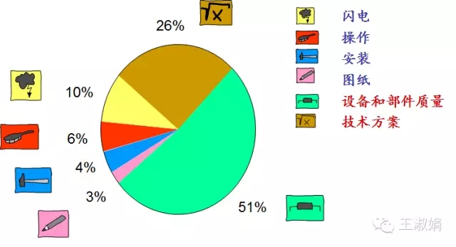 設(shè)備故障和檢修時(shí)造成系統(tǒng)效率低的一個(gè)重要原因。下圖統(tǒng)計(jì)了光伏電站故障原因,其中一半都是來自于設(shè)備。