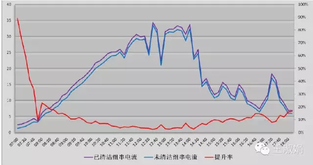 在西北地區(qū),一次沙塵暴可能會(huì)造成發(fā)電量直接降低5%以上;在東部,嚴(yán)重的霧霾天氣時(shí)光伏電站幾乎沒有出力。下圖是清洗前后光伏電站的出力對(duì)比。
