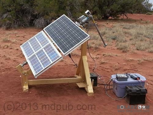 中國(guó)儲(chǔ)能網(wǎng)訊:美國(guó)亞利桑那州一名工程師Mike Davis在自家后院架設(shè)獨(dú)立式電力系統(tǒng),采用一組自制的小型太陽能陣列,為小型電池組持續(xù)充電。不過,他每隔幾個(gè)小時(shí)就得手動(dòng)將這些太陽能板移至可暴露于太陽底下的最佳位置。后來他在一次車庫大拍賣時(shí)花了15美元買了一組傳統(tǒng)電視天線旋轉(zhuǎn)器,終于讓這個(gè)手動(dòng)調(diào)整太陽能板位置的過程實(shí)現(xiàn)自動(dòng)化。