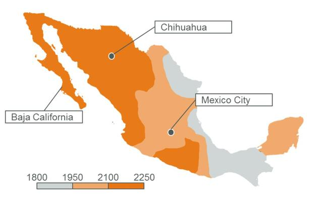 墨西哥年日照小時(shí)分布情況