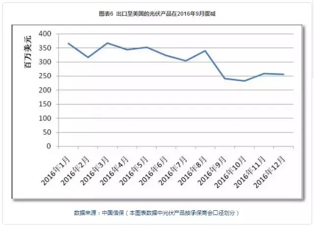 值得注意的是,受到美國(guó)大選的影響,我國(guó)出口至美國(guó)的光伏產(chǎn)品在2016年9月起驟減。