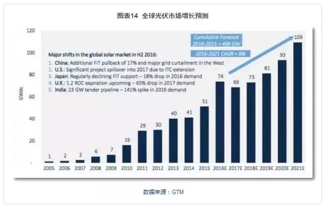 2016年全球光伏新增裝機(jī)70GW,比2015年增長(zhǎng)大約30%,然而,進(jìn)入2017年后,作為我國(guó)光伏出口的幾大重點(diǎn)市場(chǎng)--日本、德國(guó)、美國(guó)都將面臨政策上的轉(zhuǎn)變和監(jiān)管上的不確定性,整體市場(chǎng)需求面臨縮減,也將進(jìn)一步影響我國(guó)光伏出口的表現(xiàn)。