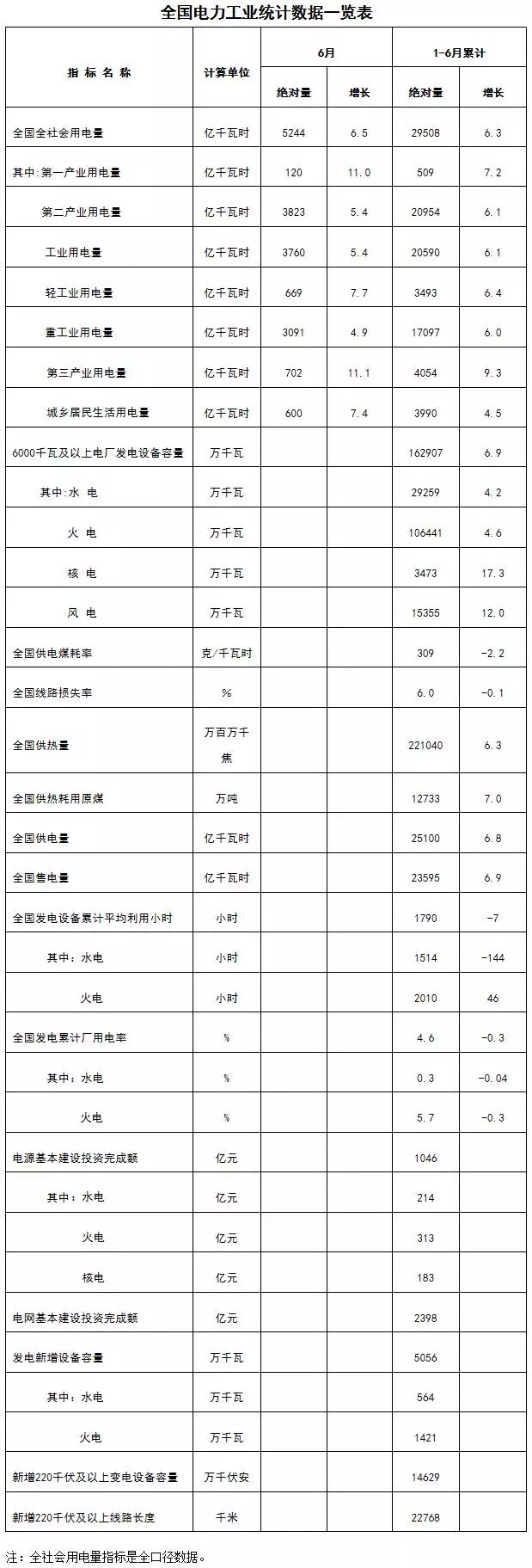 中國儲能網(wǎng)訊:7月21日,國家能源局發(fā)布1-6月份全國電力工業(yè)統(tǒng)計數(shù)據(jù)。