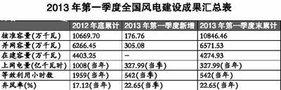 2013年第一季度,全國風(fēng)電累計(jì)核準(zhǔn)容量10846萬千瓦。其中,并網(wǎng)容量為6571萬千瓦,在建容量為4275萬千瓦,風(fēng)電并網(wǎng)容量占核準(zhǔn)比例為61%。2003年第一季度,全國風(fēng)電新增核準(zhǔn)容量177萬千瓦,新增并網(wǎng)容量305萬千瓦。第一季度全國風(fēng)電上網(wǎng)電量為328億千瓦時(shí),平均等效滿負(fù)荷利用小時(shí)數(shù)為542小時(shí)。(見上表)
