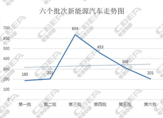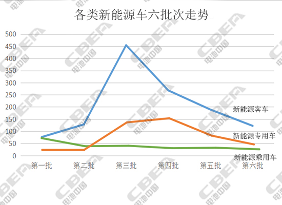 根據(jù)記者分析,受到國家新能源汽車新政策及已過目錄車型推倒重審的影響,車企1-2月加緊對重審車型進行調(diào)整,因此在第3批公告中出現(xiàn)“扎堆式”增長的情況(第3批入選車型總數(shù)為634款,在第2批入選車型數(shù)201款的基礎(chǔ)上再增加215.42%)。同時受補貼新政與系統(tǒng)能量密度等掛鉤的影響,部分車型退出新能源汽車的角逐,4-6批次入選的新能源車型數(shù)量呈下降態(tài)勢。且由于新車型研發(fā)存在一定周期,預(yù)計第七批通過車型數(shù)量與第六批基本持平,后期將有所抬升。