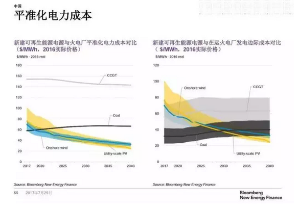 彭博分析師表示,“未來光伏、風(fēng)電的成本會更低,新建電廠會被取消,一半以上為清潔能源,其中39%的能源生產(chǎn)來自風(fēng)電、光伏等清潔能源;2020年能源價格將達到平均值,火電的平均利用小時將下降,可再生能源平均利用小時會增長?!?