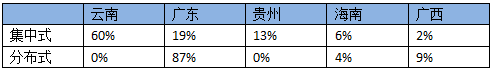 按區(qū)域分布看,云南光伏發(fā)電占比最大,裝機容量208萬千瓦,占比達到50%,其次分別是廣東(117萬千瓦)、貴州(46萬千瓦)、海南(29萬千瓦)和廣西(16萬千瓦)。