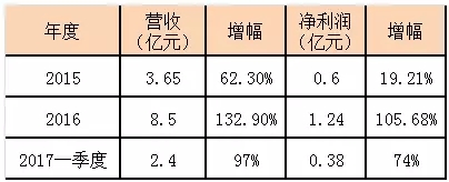 實(shí)際上,在2017年第一季度,贏合科技就取得了不俗的表現(xiàn)。公告顯示,2017年一季度企業(yè)實(shí)現(xiàn)營收2.4億元,同比增長97%,歸屬于上市公司股東凈利潤達(dá)3751萬元,同比增長74%。