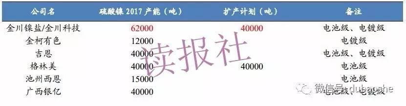 部分企業(yè)硫酸鎳產(chǎn)能規(guī)劃
