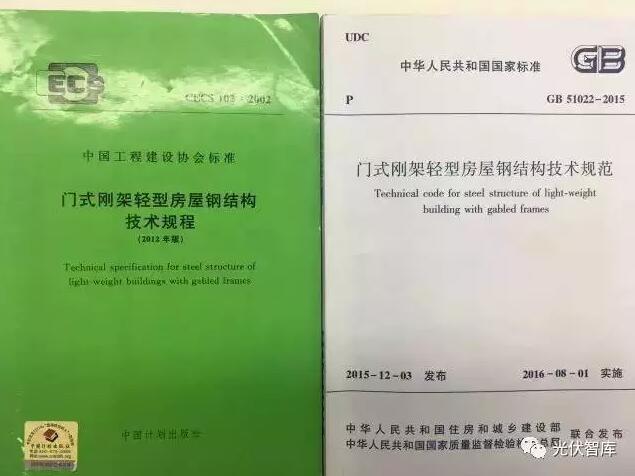 在2016年8月1日國家出臺的“屋頂分布式電站結(jié)構(gòu)國家標(biāo)準(zhǔn)”中規(guī)定,屋頂分布式電站設(shè)計(jì)應(yīng)嚴(yán)格遵循國家現(xiàn)行強(qiáng)制性標(biāo)準(zhǔn)要求。眾所周知,所有屋頂新增光伏電站項(xiàng)目實(shí)施前,都必須通過對原有建筑附件荷載的計(jì)算復(fù)核。常見的屋頂類型又分為混凝土和鋼結(jié)構(gòu)兩種。結(jié)合國家《標(biāo)準(zhǔn)化法》,2016年8月1日起施行的《門式剛架輕型房屋鋼結(jié)構(gòu)技術(shù)規(guī)范》(GB51022-2015)成為國家強(qiáng)制性標(biāo)準(zhǔn)。