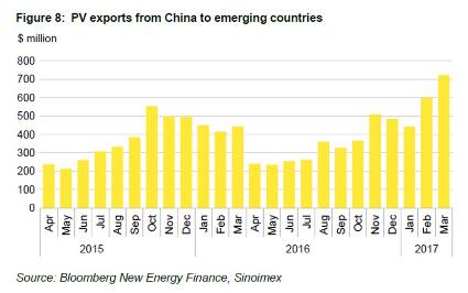 中國(guó)儲(chǔ)能網(wǎng)訊:彭博新能源財(cái)經(jīng)表示,3月份,非經(jīng)合組織國(guó)家采購(gòu)的中國(guó)光伏產(chǎn)品達(dá)7.22億美元,是2015年1月以來(lái)的月度最高。
