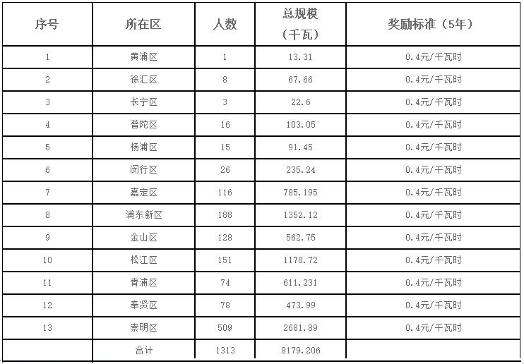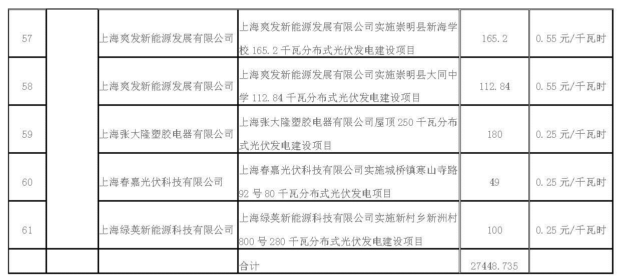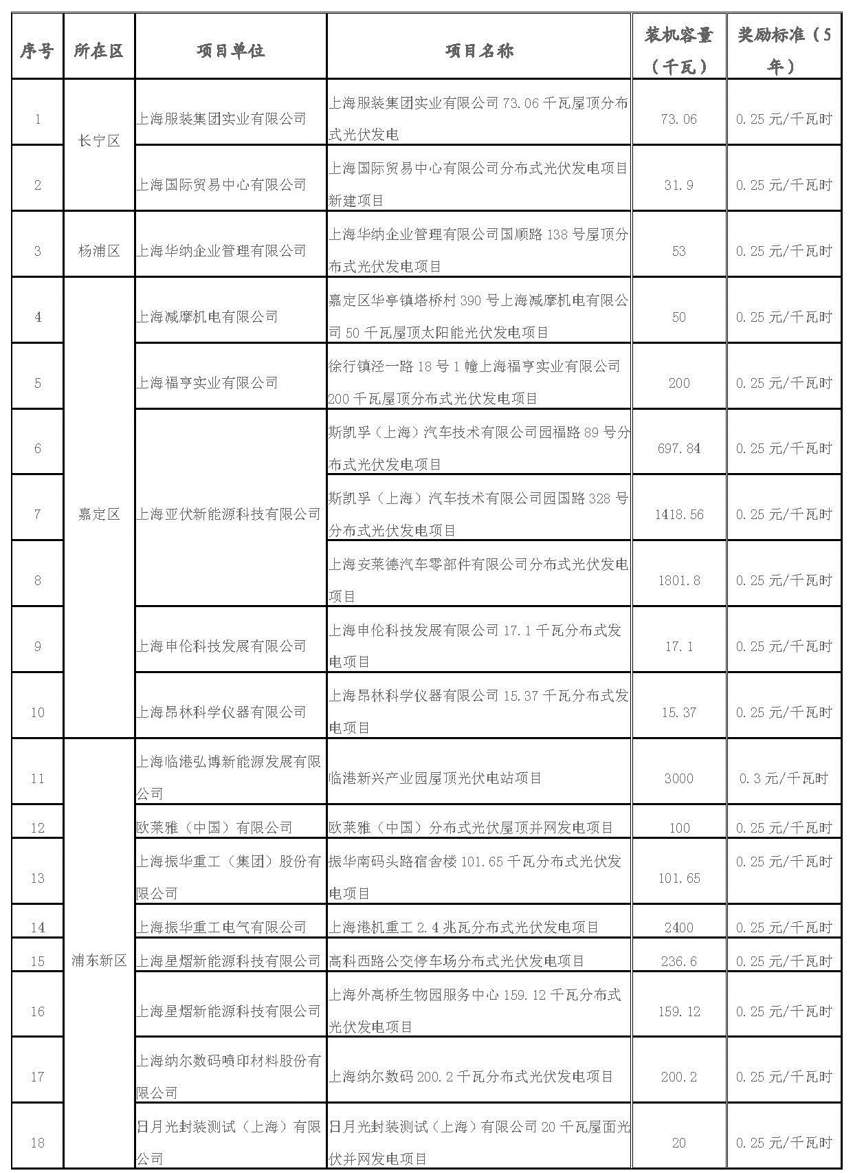 根據(jù)《上海市可再生能源和新能源發(fā)展專項(xiàng)資金扶持辦法》(滬發(fā)改能源〔2016〕136號),市發(fā)展改革委會同相關(guān)部門和單位,組織開展了2017年第一批可再生能源和新能源發(fā)展專項(xiàng)資金扶持項(xiàng)目的申報(bào)和評審工作。在專家評審意見的基礎(chǔ)上,經(jīng)審核,上海服裝集團(tuán)實(shí)業(yè)有限公司73.06千瓦屋頂分布式光伏發(fā)電項(xiàng)目等61個(gè)光伏項(xiàng)目(共27448.735千瓦)和1313戶個(gè)人光伏(共8179.206千瓦)符合條件,列入市可再生能源和新能源發(fā)展專項(xiàng)資金獎(jiǎng)勵(lì)目錄予以支持(詳見附件)。