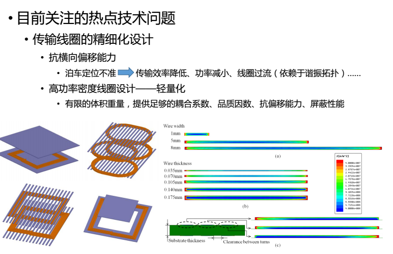 二是線圈問題,因?yàn)樾枰畲蟮碾姶艌鲴詈?,耦合線圈的設(shè)計(jì)非常重要。無線傳輸?shù)脑边吘€圈需要有最大的電磁耦合,如果一邊沒對齊,傳輸效率就會降低、傳輸功率就會變小,所以說怎么對齊是一個(gè)問題,而且本身線圈越大可能接收能力也越大,但線圈過大過重,放在汽車上就又不方便,所以這是一系列問題。