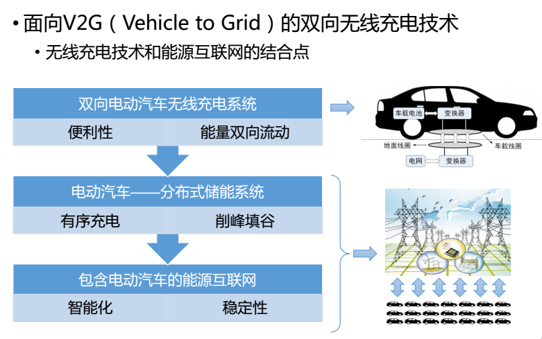 無論是技術(shù)問題還是非技術(shù)問題,都是在逐步解決之中。電動汽車無線充電技術(shù)作為一種新興的綜合性前沿技術(shù),正在動態(tài)發(fā)展之中,遠(yuǎn)遠(yuǎn)沒有到一個(gè)終極狀態(tài)。電動汽車開啟了能源和交通領(lǐng)域重大的變革,而電動汽車充電網(wǎng)絡(luò)集能源網(wǎng)、交通網(wǎng)、信息網(wǎng)三種屬性于一身,未來將要?jiǎng)?chuàng)造出巨大的社會和經(jīng)濟(jì)的綜合價(jià)值,下面即是電動汽車無線充電未來的一些發(fā)展方向。