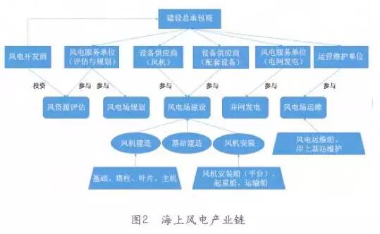 海上風(fēng)能利用的不斷增加也必將帶動(dòng)產(chǎn)業(yè)鏈內(nèi)的各相關(guān)行業(yè)發(fā)展。海上風(fēng)電產(chǎn)業(yè)的運(yùn)行,以海上風(fēng)電投資企業(yè)為主導(dǎo)和驅(qū)動(dòng)力,其總投資量在很大程度上決定了風(fēng)電項(xiàng)目的規(guī)模和相關(guān)企業(yè)的獲利大小;以海上風(fēng)電設(shè)備制造業(yè)為硬件供應(yīng),廣義上的風(fēng)電設(shè)備供應(yīng)應(yīng)當(dāng)包括風(fēng)機(jī)整機(jī)供應(yīng)和相關(guān)海上風(fēng)電工程裝備供應(yīng)。總體來說,海上風(fēng)電產(chǎn)業(yè)鏈的運(yùn)行主線為:風(fēng)資源評(píng)估—風(fēng)電場(chǎng)規(guī)劃—風(fēng)電場(chǎng)建設(shè)—并網(wǎng)發(fā)電—風(fēng)電場(chǎng)運(yùn)維。