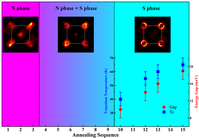 圖2. 單層FeSe/SrTiO3費米面隨著退火的演變