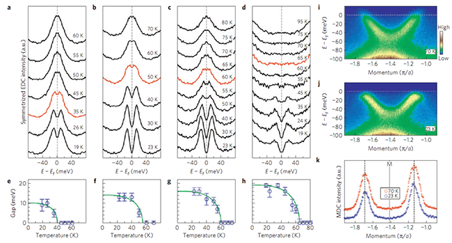 圖5. 單層FeSe/SrTiO3薄膜的超導(dǎo)轉(zhuǎn)變溫度及超導(dǎo)能隙隨載流子濃度的增加而增加。