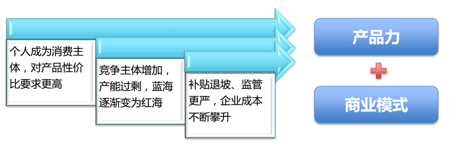 對于未來的新能源企業(yè)的核心競爭力應該是兩大塊,一塊是產品力,因為新能源汽車整車首先向所有的客戶提供的是一個產品,它是一個交通工具。但是,和傳統(tǒng)的汽車行業(yè)的從業(yè)者比起來,有上百年的積累,對于新能源行業(yè)的從業(yè)者來說,很難在短短的5年到10年內完成別人用100年甚至更長時間完成所做的工作,所以未來新能源行業(yè)發(fā)展應該是產品技術的創(chuàng)新和商業(yè)模式的創(chuàng)新相結合,向客戶提供一個更完美、更便捷、成本更低、性價比更高的一個綜合的出行方案。要解決客戶的痛點,對產品的性價比要求更高,要解決企業(yè)面臨的現(xiàn)金流、成本包括市場售后服務各項壓力。但是如何去解決,那就是要找出如何把產品和商業(yè)模式結合,充分發(fā)揮產品的優(yōu)勢解決客戶的問題,同時利用商業(yè)模式的創(chuàng)新,降低由于新能源產品成本偏高帶來的困境。