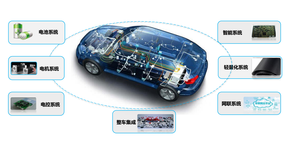 技術方面列了幾個核心技術,電池、電機、電控傳統(tǒng)的“三大點”,智能、輕量化、網聯(lián),包括整車集成,這是更細的每個新能源整車企業(yè)未來提升產品競爭力所要做的布局。