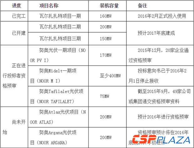 表:已公布的摩洛哥太陽能項(xiàng)目一覽