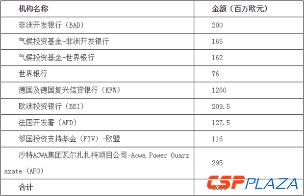 摩洛哥2009年宣布的2000MW太陽能項(xiàng)目所需資金巨大,約需90億美元,完全憑借摩本身財(cái)力難以承擔(dān)。據(jù)沙特ACWA集團(tuán)披露,其中標(biāo)的正在實(shí)施中的瓦爾扎扎特太陽能二期和三期項(xiàng)目資金構(gòu)成為80%的債務(wù)和20%的自有資金。其中債務(wù)由摩洛哥太陽能署承擔(dān),國際開發(fā)機(jī)構(gòu)對(duì)其提供融資支持。