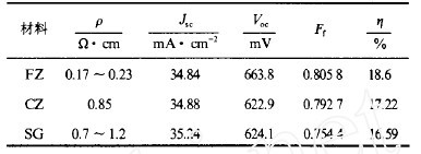 在優(yōu)化工藝的基礎(chǔ)上,我們以太陽能級硅材料得到了轉(zhuǎn)換效率為 16.59% (VOC=624.1 mV,JSC=35.24 mA/cm2 Ff =0.7544)的大面積(25.25cm2 ) 太陽電池,其一致性、重復(fù)性較好.下表比較了采用不同材料的電池性能。