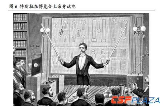 1893年,歷史上第一次電氣交易會(huì)哥倫比亞博覽會(huì)進(jìn)行招標(biāo),這對(duì)于愛(ài)迪生和特斯拉來(lái)說(shuō),是交直流大戰(zhàn)中的重要一役。最初以愛(ài)迪生為代表的通用電氣報(bào)價(jià)180萬(wàn)美元,使用直流電發(fā)電系統(tǒng),但很快就被主辦方駁回,因?yàn)檫@一報(bào)價(jià)遠(yuǎn)遠(yuǎn)超出其預(yù)算。于是愛(ài)迪生狠下心把報(bào)價(jià)壓縮到55.4萬(wàn)美元,正當(dāng)他胸有成竹、勢(shì)在必得之時(shí),威斯汀豪斯帶領(lǐng)的西屋電氣以39.9萬(wàn)美元的超低價(jià)格成功中標(biāo),而他使用的是特斯拉發(fā)明的交流電系統(tǒng)。在展會(huì)上,特斯拉為了反駁愛(ài)迪生散播的交流電有致命危險(xiǎn)的言論,一手高舉磷光燈泡,另一只手摸向電門,以自己的身體為導(dǎo)體,點(diǎn)亮了手中的燈泡。對(duì)手的誹謗不攻自破,參會(huì)者都為之嘆服。