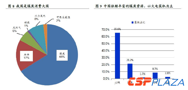 多煤貧油少氣決定了中國(guó)以火電裝機(jī)為主。①中國(guó)的煤炭資源豐富,據(jù)《世界能源統(tǒng)計(jì)回顧2015》數(shù)據(jù)顯示,中國(guó)能源消費(fèi)結(jié)構(gòu)中煤炭占比高達(dá)66%,約為天然氣和石油消費(fèi)總量的兩倍。②依托于中國(guó)豐富的煤炭資源,發(fā)電裝機(jī)結(jié)構(gòu)中火電占據(jù)主導(dǎo)地位。
