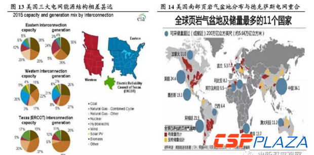 中國(guó)儲(chǔ)能網(wǎng)訊:能源結(jié)構(gòu)決定中美電網(wǎng)差異化形態(tài)。①東部電網(wǎng)地區(qū)因靠近美國(guó)主要煤、氣供應(yīng)地而以煤炭和天然氣發(fā)電為主。②西部電網(wǎng)地區(qū)則因靠近科羅拉多山系和河流,分布有落基山脈等地勢(shì)落差很大的山體,主要以水電裝機(jī)為主。山脈地形客觀上也阻礙了西部電網(wǎng)對(duì)外聯(lián)結(jié)的發(fā)展。③南部的德克薩斯電網(wǎng)處于頁(yè)巖氣盆地所在地,天然氣發(fā)電一家獨(dú)大,形成了區(qū)域內(nèi)的獨(dú)立小電網(wǎng)。