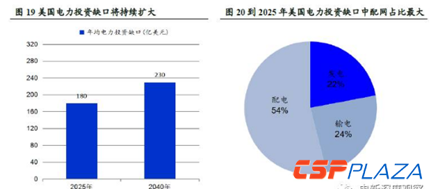 美國(guó)存在較大電力缺口,其中配網(wǎng)部分最顯著。據(jù)美國(guó)土木工程師協(xié)會(huì)于2016年發(fā)布的美國(guó)基礎(chǔ)設(shè)施投資缺口研究報(bào)告,美國(guó)電力投資缺口持續(xù)擴(kuò)大將嚴(yán)重?fù)p害經(jīng)濟(jì)社會(huì)的發(fā)展。到2025年,投資缺口額將累計(jì)達(dá)到1770億美元,到2040年,則將進(jìn)一步超過(guò)5650億美元。若這一情況繼續(xù)得不到解決,將給美國(guó)經(jīng)濟(jì)發(fā)展成本造成很大負(fù)擔(dān),同時(shí)促使美國(guó)家庭生活成本和企業(yè)經(jīng)營(yíng)成本的上升,最終導(dǎo)致全國(guó)GDP的下滑。據(jù)該報(bào)告推算,到2025年,美國(guó)GDP將減少8190億美元,失業(yè)人口增加10.2萬(wàn),到2040年,GDP將擴(kuò)大減幅至1.9萬(wàn)億美元,失業(yè)人口升至24.2萬(wàn)。