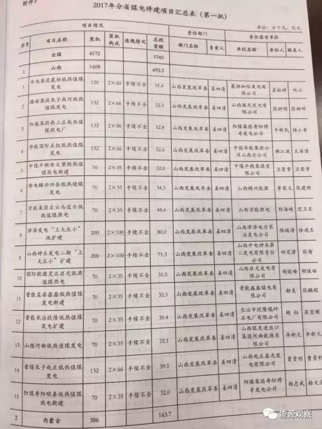 媒體公布了各省煤電調(diào)控規(guī)模、各省煤電機(jī)組停建及緩建名單,其中不乏已經(jīng)開工建設(shè),并即將投產(chǎn)的項(xiàng)目。請大家各自對照。