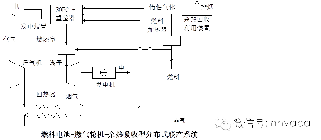 5)燃料電池-燃?xì)廨啓C(jī)-余熱吸收型分布式聯(lián)產(chǎn)系統(tǒng)